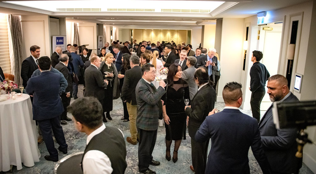 The evening was presided over by Dr. Frank Alafaci, President of ABSC Inc., who welcomed the diverse assembly with warmth and humour, describing the occasion as “the most productive excuse to enjoy a cocktail this side of Sydney Harbour.”