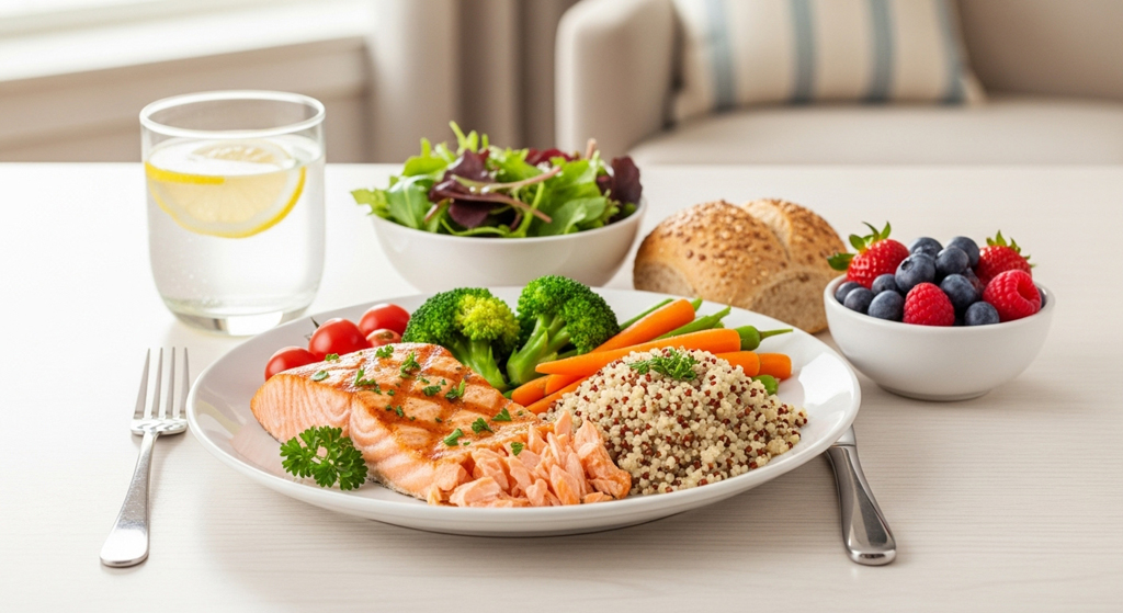 A balanced diet is important for seniors, as it helps to provide the essential nutrients that the body needs to function properly. A balanced diet should include foods from all food groups, such as vegetables, fruits, grains, dairy, protein, and healthy fats. Eating diverse food makes meals appealing and ensures that seniors are getting the necessary minerals and vitamins. When planning meals for seniors, aim for a healthy balance of fats, protein, and carbohydrates. Consumption of high-fiber foods helps people feel full for a longer time and also helps in digestion. High-fiber foods are brown rice, beans, oats, broccoli, apples, and flaxseeds. Try to eat small, frequent meals throughout the day, which ensures that seniors are getting enough nutrients and calories.