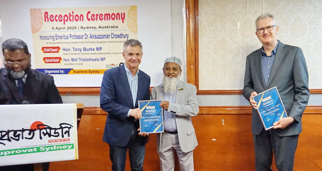 Hon Tony Burke MP, Minister for Home Affairs, Minister for the Arts, Minister for Cyber Security, Minister for Immigration and Citizenship, Leader of the House, House of Representatives And Hon Matt Thistlethwaite MP, Assistant Minister for Immigration, Assistant Minister for Foreign Affairs and Trade , House of Representatives with Md Abdullah Yousuf, Editor in chief –Suprovat Sydney
