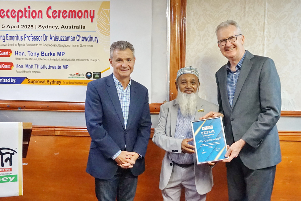 Hon Tony Burke MP, Minister for Home Affairs, Minister for the Arts, Minister for Cyber Security, Minister for Immigration and Citizenship, Leader of the House, House of Representatives And Hon Matt Thistlethwaite MP, Assistant Minister for Immigration, Assistant Minister for Foreign Affairs and Trade , House of Representatives. Md Abullah Yousuf, Editor in chief –Suprovat Sydney