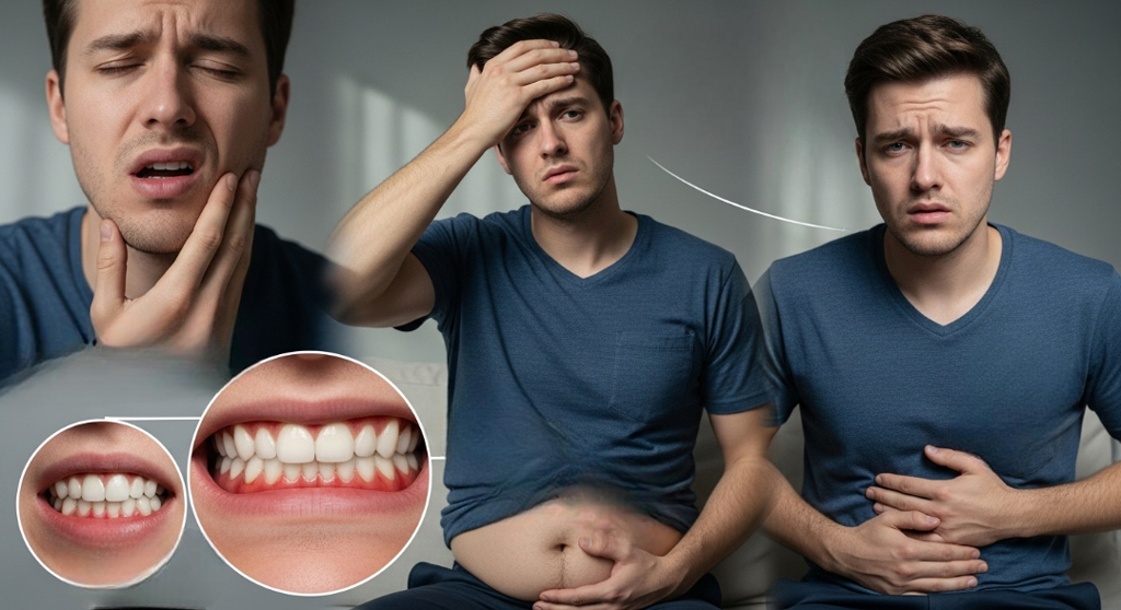 You might be grinding your teeth, a habit that can be worsened by stress. You can ask your doctor for a nighttime mouth guard, which can help you reduce or stop teeth grinding.