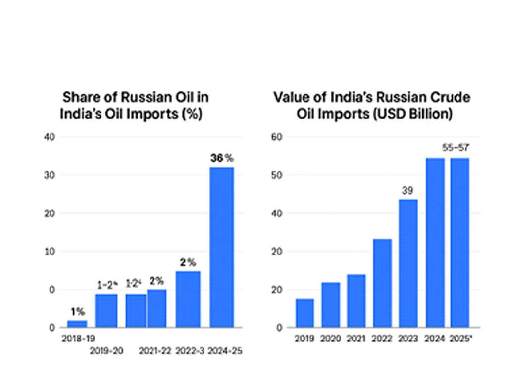 (Chart created by author using compiled data (2025) from publicly available trade data reported by the Financial Times, Reuters, Economic Times, and Government of India Petroleum Import Statistics (2019-2025)).