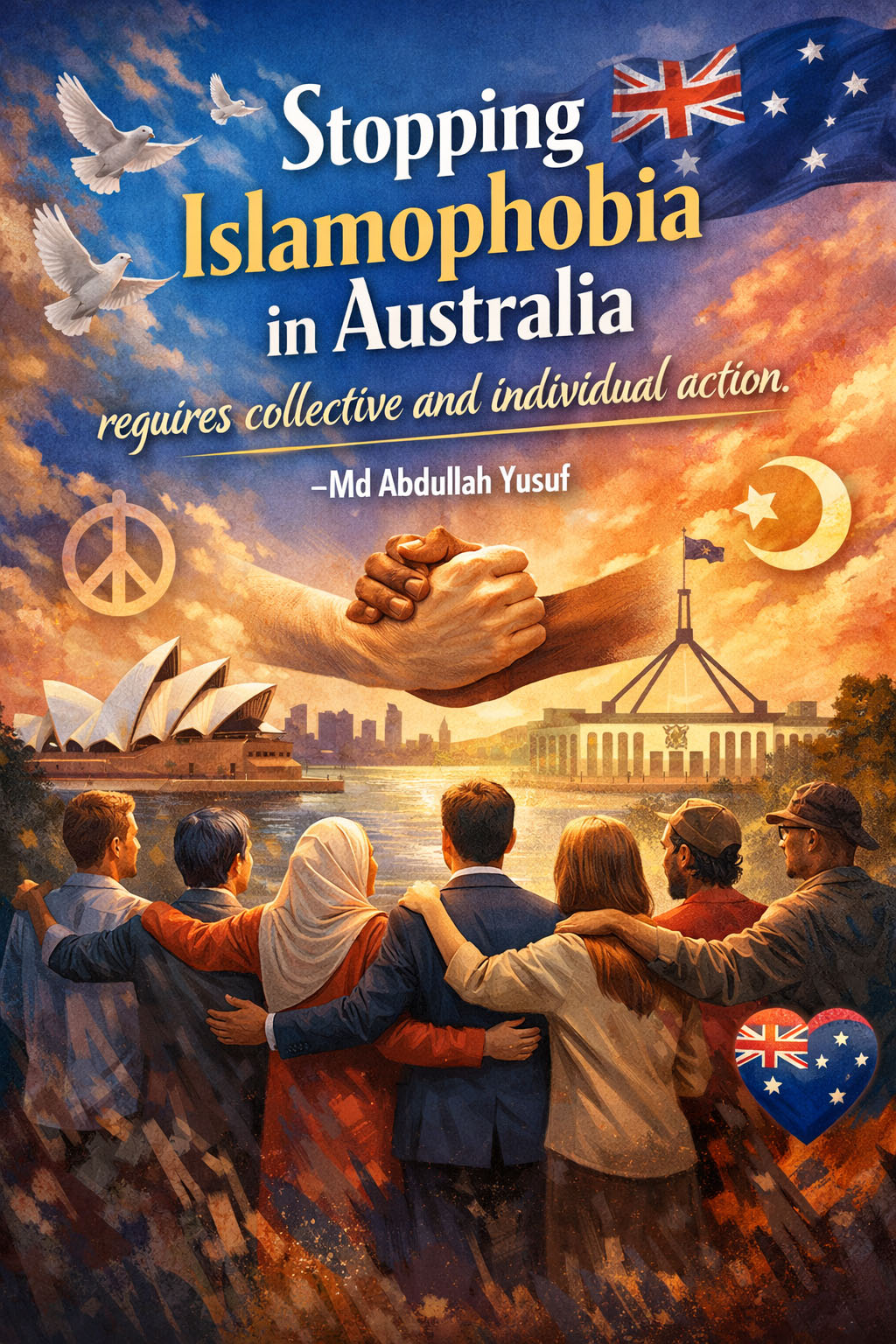-Md Abdullah Yusuf: Stopping Islamophobia in Australia requires both collective action and individual responsibility. Change happens when institutions, communities, and everyday people act together. Islamophobia is not only an issue affecting Muslims; it threatens Australia’s core values of fairness, multiculturalism, and social cohesion.