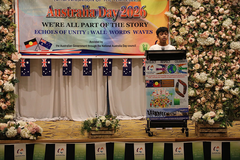 অস্ট্রেলিয়ায় জন্ম ও বেড়ে ওঠা শিশু-কিশোরদের চিন্তা, অনুভব ও বক্তব্যে মুগ্ধ হয়ে উঠেছে উপস্থিত অতিথি, অভিভাবক ও বিশিষ্টজনেরা। বয়সে তারা ছোট হলেও তাদের কণ্ঠে ফুটে উঠেছে ইতিহাসবোধ, সামাজিক দায়বদ্ধতা এবং একটি অন্তর্ভুক্তিমূলক অস্ট্রেলিয়ার স্বপ্ন। অস্ট্রেলিয়া ডে উপলক্ষে আয়োজিত এই অনুষ্ঠানে শিশু, কিশোর ও তরুণ বক্তারা নিজ নিজ অবস্থান থেকে দেশ, ইতিহাস ও ভবিষ্যৎ নিয়ে গভীর ও প্রাঞ্জল বক্তব্য তুলে ধরেন।