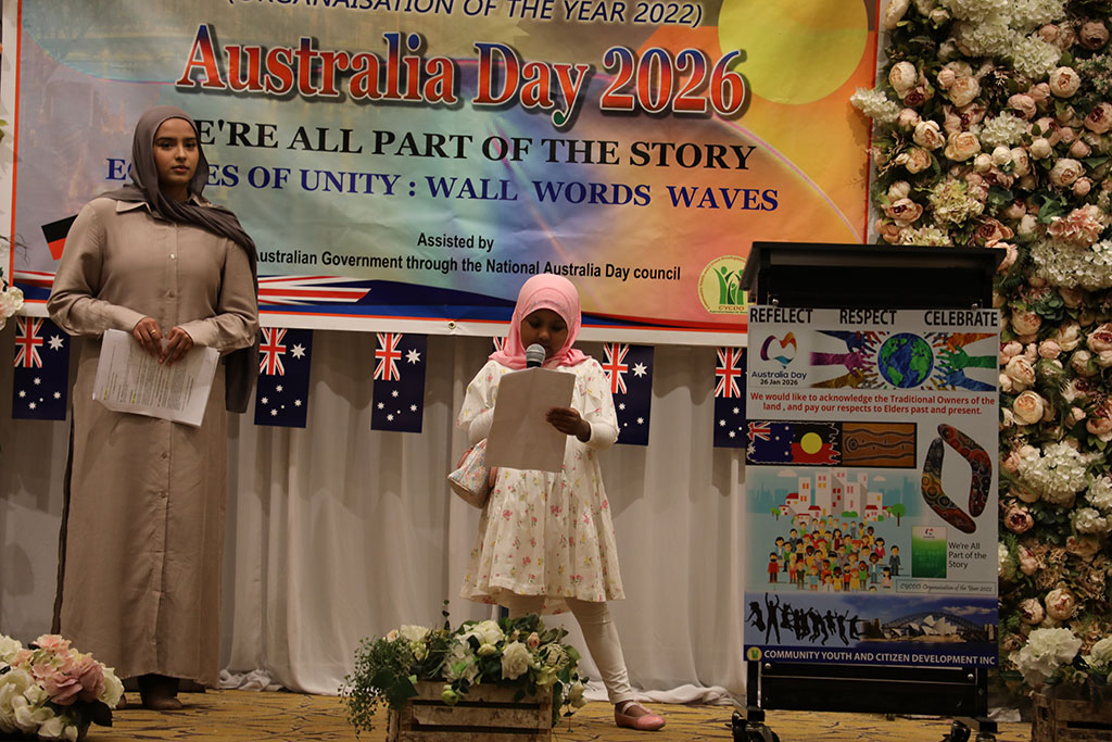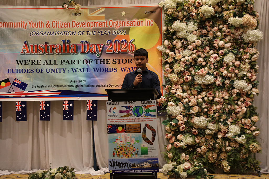 নাচ ,গান বা অহেতুক মুরিব্বায়না ঢংয়ে বক্তব্য ছাড়াও যে একটি অনুষ্ঠান শতভাগ সফল ও সাফল্য মন্ডিত হতে পারে , সেটা গত ২৬ জানুয়ারি সোমবার ২০২৬ কমিউনিটি ইয়ুথ এন্ড সিটিজেন ডেভেলপমেন্ট অর্গানাইজেশন ইনকের অনুষ্ঠান না দেখলে বুঝা যেত না। অস্ট্রেলিয়ায় জন্ম ও বেড়ে উঠা ছোট্ট অস্ট্রেলিয়ানদের বক্তব্যে সকলেই বিমোহিত। নিচে সংক্ষিপ্ত ছোট্ট অস্ট্রেলিয়ানদের বক্তব্যের কিয়দাংশ তুলে ধরা হলো।