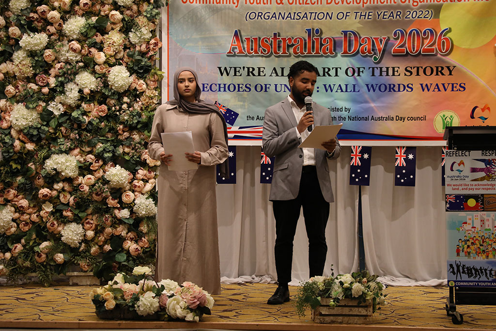 নাচ ,গান বা অহেতুক মুরিব্বায়না ঢংয়ে বক্তব্য ছাড়াও যে একটি অনুষ্ঠান শতভাগ সফল ও সাফল্য মন্ডিত হতে পারে , সেটা গত ২৬ জানুয়ারি সোমবার ২০২৬ কমিউনিটি ইয়ুথ এন্ড সিটিজেন ডেভেলপমেন্ট অর্গানাইজেশন ইনকের অনুষ্ঠান না দেখলে বুঝা যেত না। অস্ট্রেলিয়ায় জন্ম ও বেড়ে উঠা ছোট্ট অস্ট্রেলিয়ানদের বক্তব্যে সকলেই বিমোহিত। নিচে সংক্ষিপ্ত ছোট্ট অস্ট্রেলিয়ানদের বক্তব্যের কিয়দাংশ তুলে ধরা হলো।