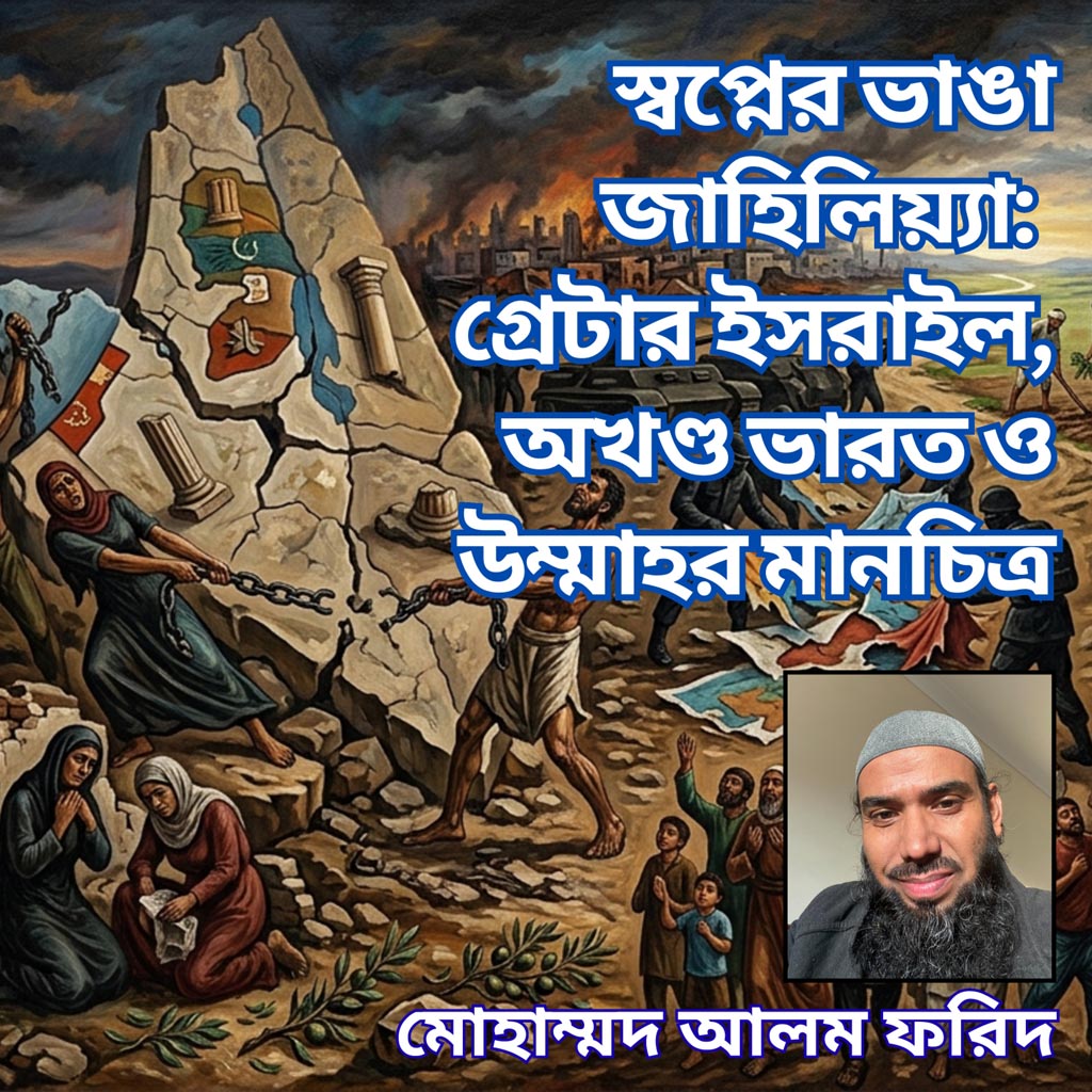 মোহাম্মদ আলম ফরিদ: মানচিত্র কেবল কাগজে আঁকা রেখা নয়; এটি ক্ষমতার জবরদস্তি, মিথ্যার ছুরি এবং সত্যের রক্তাক্ত সাক্ষ্য। প্রতিটি রেখা এক অহংকারের দাবিদার, এক দখলদারের নির্দেশ—যাকে কখনো কিতাবের আয়াতের ভুল ব্যাখ্যা দিয়ে, কখনো পুরাতন কাহিনীর অংশ কেটে মিলে বৈধতার লেবাস দেওয়ার চেষ্টা করা হয়। নীলনদ থেকে ইউফ্রেটিস পর্যন্ত “গ্রেটার ইসরাইল” এবং সিন্ধু থেকে লঙ্কা পর্যন্ত “অখণ্ড ভারত”—দুটি আলাদা ভূখণ্ডের দুটি ভিন্ন ভ্রান্ত কল্পনা, কিন্তু লক্ষ্য একই: দখল, আধিপত্য, এবং মুসলিম উম্মাহর মানচিত্রকে টুকরো টুকরো করা। এই ধরণের ফিতনা শুধু ভূ-রাজনীতি নয়; এটি এক বাস্তবতার বাইরে চলে যাওয়া বিভ্রান্তি, যেখানে ইতিহাস বিকৃত করা হয়, ধর্মীয় সত্য বদলে দেখানো হয় এবং ক্ষমতার মোহ বাস্তবতাকে অন্ধকারে ঠেলে দেয়।