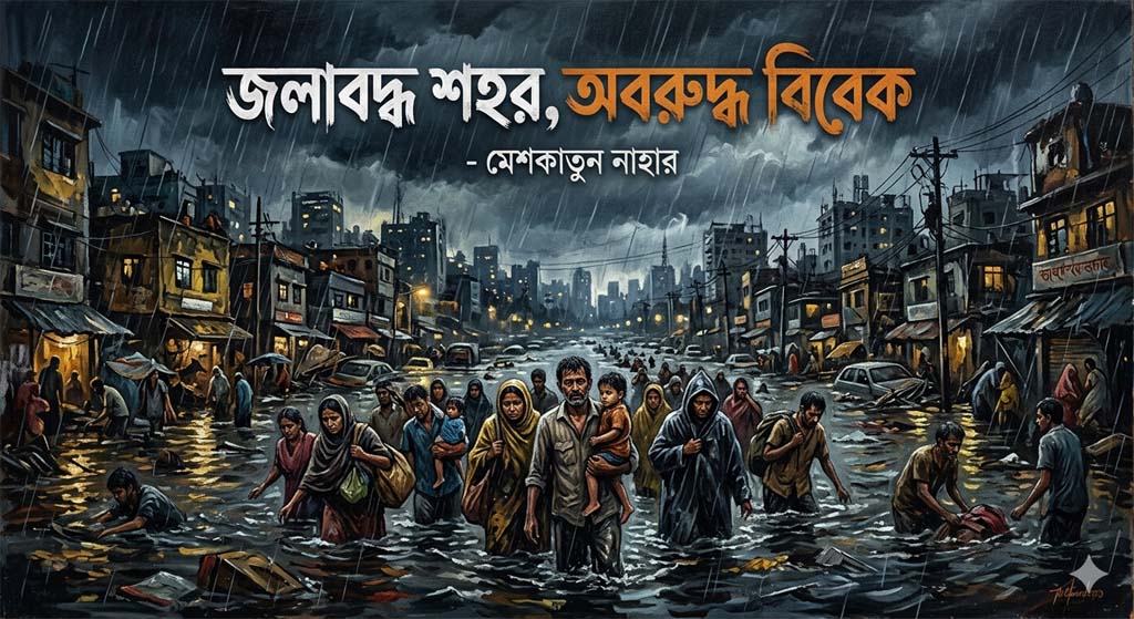 ড্রেন আসলে শহরের শ্বাসনালী। মানুষের যেমন শ্বাস বন্ধ হলে জীবন থমকে যায়, তেমনি ড্রেন বন্ধ হলে শহরও ধীরে ধীরে নিঃশ্বাস নিতে ভুলে যায়। একটু বৃষ্টি হলেই যখন রাস্তা ডুবে যায়, তখন সেটা কেবল পানি জমা নয়—সেটা এক অচল সময়ের প্রতীক। জলাবদ্ধ রাস্তায় দাঁড়িয়ে থাকা মানুষগুলো যেন সময়ের কাছে বন্দি, তাদের গন্তব্য থেমে থাকে এক অদৃশ্য বাধার সামনে।এই জলাবদ্ধতা শুধু ভৌত দুর্ভোগ নয়; এটি এক অস্তিত্বগত সংকট। কারণ প্রতিটি জমে থাকা পানির স্তর যেন আমাদের ভুলে যাওয়া দায়িত্বের প্রতিচ্ছবি। প্রতিটি পলিথিনের টুকরো যেন একেকটি অবহেলার দলিল। আমরা যখন অচেতনভাবে ময়লা ফেলি, তখন আসলে আমরা নিজের পথেই প্রতিবন্ধকতা তৈরি করি।অদ্ভুত এক দ্বন্দ্বে আমরা বাস করি—একদিকে আমরা চাই আধুনিক শহর, অন্যদিকে আমাদের আচরণ রয়ে যায় অচেতন ও অনিয়ন্ত্রিত। এই দ্বৈততা থেকেই জন্ম নেয় নগরের অসুস্থতা। ড্রেনগুলো তখন আর কেবল নালা থাকে না; তারা হয়ে ওঠে আমাদের নৈতিক ব্যর্থতার দলিলপত্র।বর্তমান সময়ে নগরজীবনে প্রযুক্তি অনেক দূর এগিয়েছে—স্মার্ট সিটি, ডিজিটাল নজরদারি, আধুনিক অবকাঠামো। কিন্তু প্রশ্ন থেকে যায়—মানুষ কি স্মার্ট হয়েছে? যদি স্মার্টফোন হাতে নিয়েও আমরা ড্রেনে আবর্জনা ফেলি, তবে সেই প্রযুক্তি কেবল বাহ্যিক এক অলংকার ছাড়া আর কিছুই নয়।
