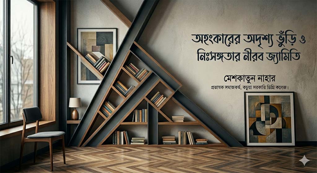 অহংকারের জ্যামিতি এক ধরনের দূরত্ব-নির্মাণের প্রক্রিয়া। এটি দৃশ্যমান দেয়াল তোলে না, কিন্তু এমন এক পরিসর তৈরি করে, যেখানে অন্যরা প্রবেশ করতে সংকোচ বোধ করে। এই সংকোচ প্রথমে সূক্ষ্ম—কথার ভঙ্গিতে, দৃষ্টির ভেতরে, আচরণের সূক্ষ্ম ইঙ্গিতে। কিন্তু ধীরে ধীরে এটি স্থায়ী রূপ নেয়, এবং একসময় তা এমন এক ব্যবধানে পরিণত হয়, যা আর সহজে অতিক্রম করা যায় না। এই ব্যবধানই নিঃসঙ্গতার জন্ম দেয়—একটি নিঃসঙ্গতা, যা কোলাহলের মধ্যেও গভীরভাবে অনুভূত হয়।